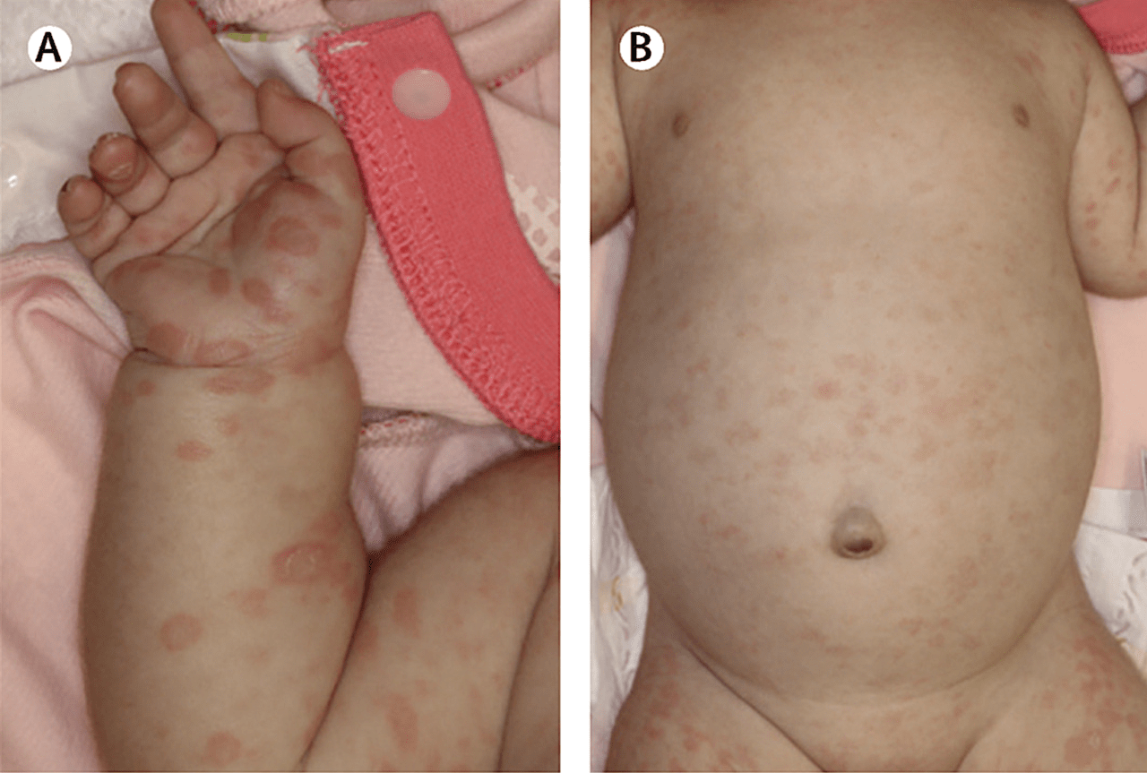 Source: R Hirate T, Kanda K, Ohshima Y, Shinoda K, Tetsuka N. Congenital syphilis in a 2-month-old infant during Japanese outbreak. Lancet. 2024;404:971. Reproduced with permission from Elsevier.